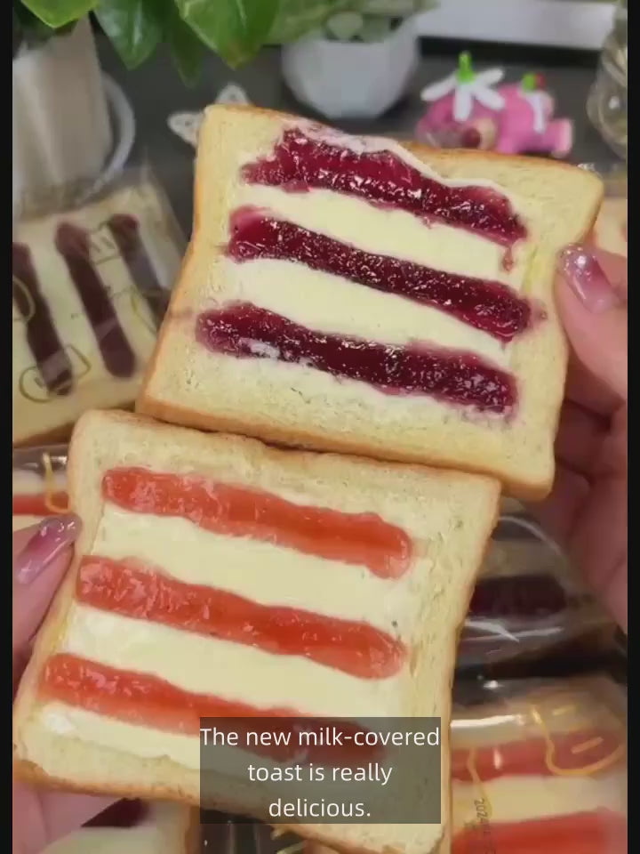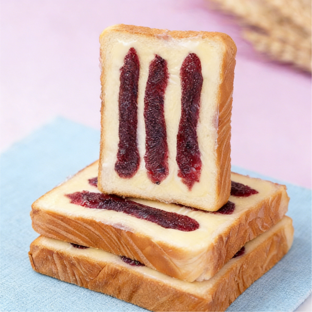A delicious toast with two flavors of blueberries and strawberries, carefully blended with high-quality wheat flour and fresh fruit flavors. The outer layer of the toast is soft and delicate, covered with a light and mellow milk cap coating, which melts in the mouth. The fresh fruit aroma blends with the rich and sweet milk, creating a rich and layered taste that is sweet but not greasy. The independent packaging design makes it convenient to enjoy anytime, anywhere. Whether it's as a breakfast pairing, afternoon tea, or energy supplement during work and study breaks, it can bring you a fresh and sweet taste experience. Each slice is full of natural fruit flavors and handmade warmth.