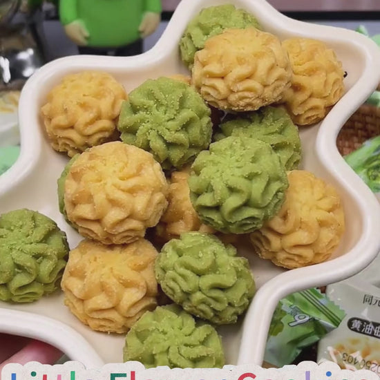 Classic original cookies are baked with high-quality butter, with a rich milk aroma and crispy texture; Matcha flavor blended with natural matcha powder, with a clear and elegant tea aroma, slightly bitter and sweet. Both models are crafted in exquisite floral designs with clear and cute patterns, and come in separate packaging to lock in freshness. It is suitable for afternoon tea Dim sum, hand gifts or leisure snacks. The combination of two flavors can satisfy different tastes, so that each mouthful is filled with butter mellow fragrance and matcha fragrance.
