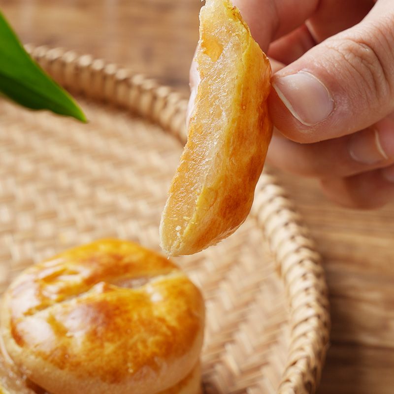 Classic Cantonese Crispy Snack, with a golden, flaky crust and a delicate, crispy texture, filled with a soft, sweet, and not overly sugary paste made from glutinous rice flour and candied winter melon. Traditional baking techniques blend the crust and filling, releasing a mild caramel and sesame aroma. Perfect as a tea snack, gift, or Chinese breakfast, it particularly appeals to consumers who love traditional pastries, with every bite carrying the simple yet heartwarming flavors of Lingnan cuisine.