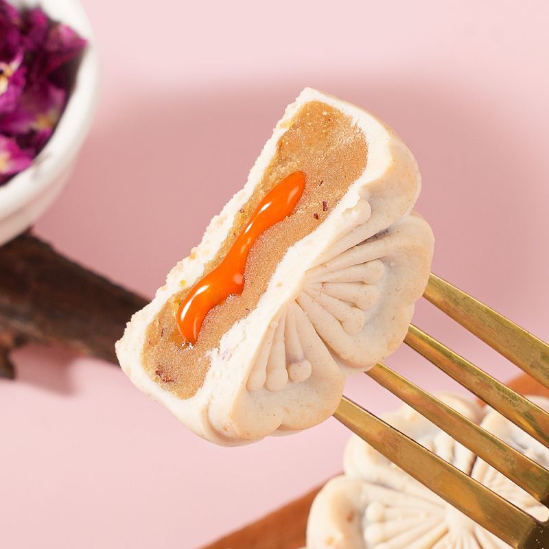Combining the essence of traditional "Seven Whites" herbs with edible rose petals, the outer layer is a delicate and soft rice cake, while the inner layer contains a warm and sweet rose filling. The entrance is fragrant, sweet but not greasy, and the texture of the cake is smooth and flowing. Independently and elegantly packaged, it is suitable as a health tea, Chinese dessert, or seasonal gift. After refrigeration, the taste is even more refreshing and refreshing. Each bite contains the fragrance of Eastern plants and the gentle poetry of artisanal craftsmanship.