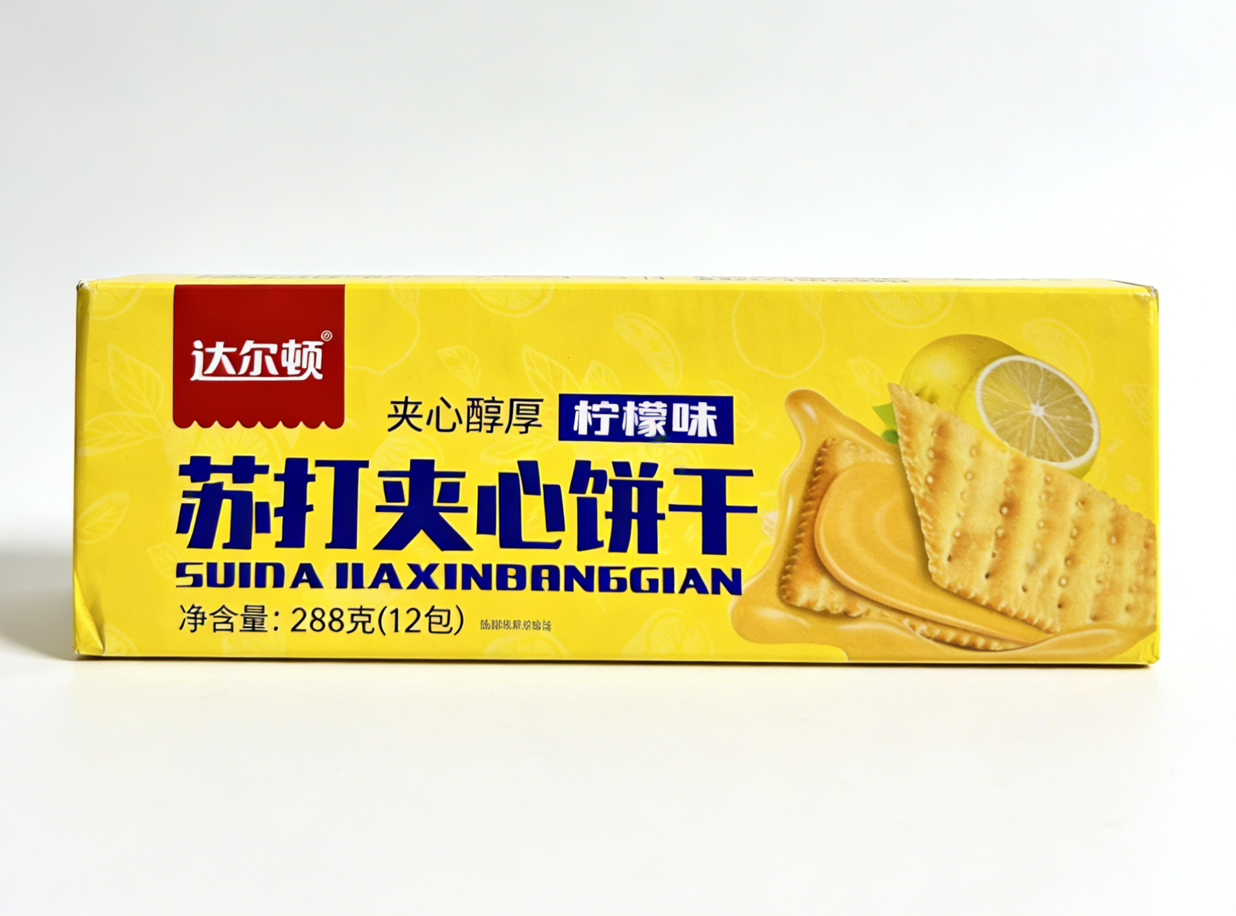 12.14oz/1box [Da'erdun] Soda Sandwich Cookies Lemon Flavor