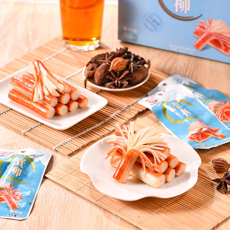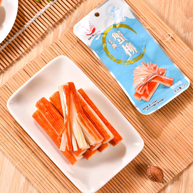 Carefully selected high-quality fish paste is crafted with ingenuity, offering three flavors: barbecue, spicy, and crab meat. The texture is distinct and the taste is fresh and tough, perfectly replicating the delicate texture of hand torn crab fillet and the freshness of the ocean. The barbecue flavor is smoky and mellow, the spicy and pungent taste is appetizing, and the crab meat flavor is restored to its natural freshness. Each dish is individually packaged and ready to eat. It can be used as a casual snack, side dish, or paired with instant noodles, salads, or as an outdoor light food to meet different taste preferences, allowing you to enjoy the ocean flavor and hand tearing fun anytime, anywhere.