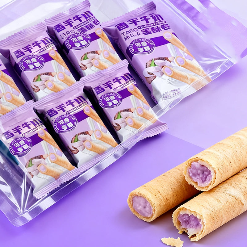 14.11oz/1bag Taro Milk Egg Roll Crispy,Party Snacks