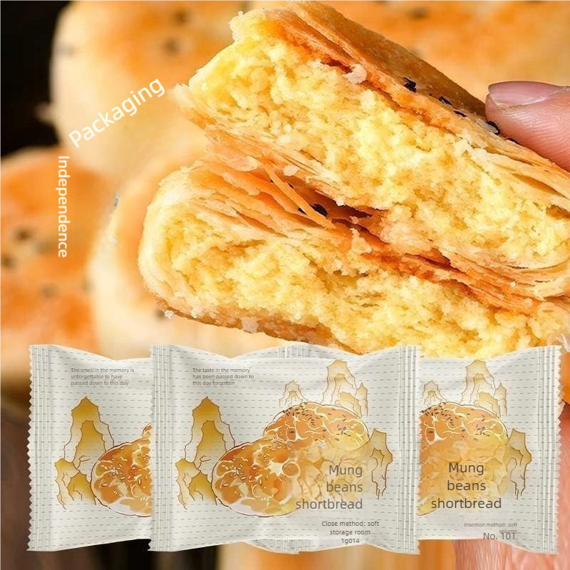 Traditional Chinese style pastry has a distinct outer layer and a crispy and fragile aroma. The filling is carefully stir fried with peeled mung beans, resulting in a dense and sweet taste with a pure bean aroma. After baking, the color is light yellow, the skin and filling blend together, and the aftertaste is sweet and smooth. It is suitable for refreshments, hand gifts or festival Dim sum, especially favored by diners who like classic mungbean flavor, and each mouthful is wrapped with simple and long southern charm.
