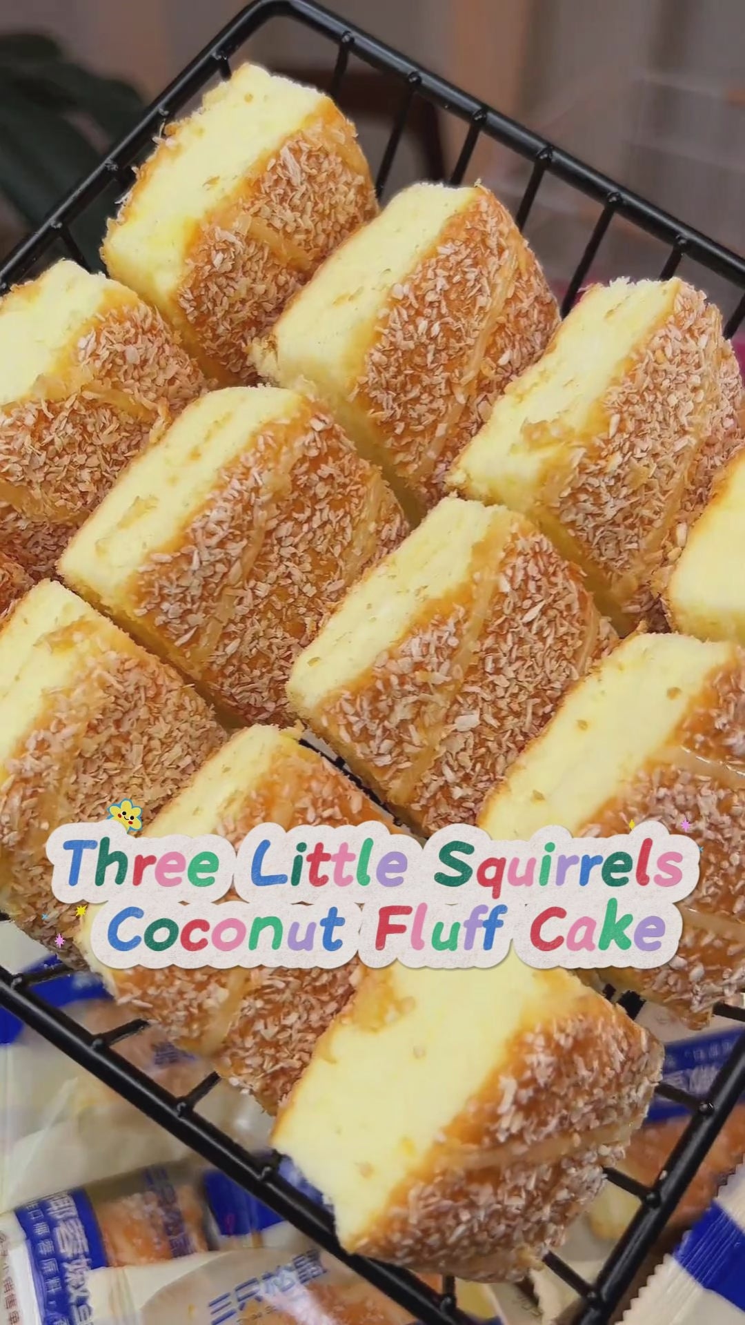 2.04LB/1boxed(Includes 50 packages)[Three Squirrels] Coconut Tender Cake,Soft & Chewy Coconut Milk Cakes in Bulk, Made with Real Coconut, Lightly Sweet & Fragrant, Perfect Value Pack for Office, Family, or Party Sharing