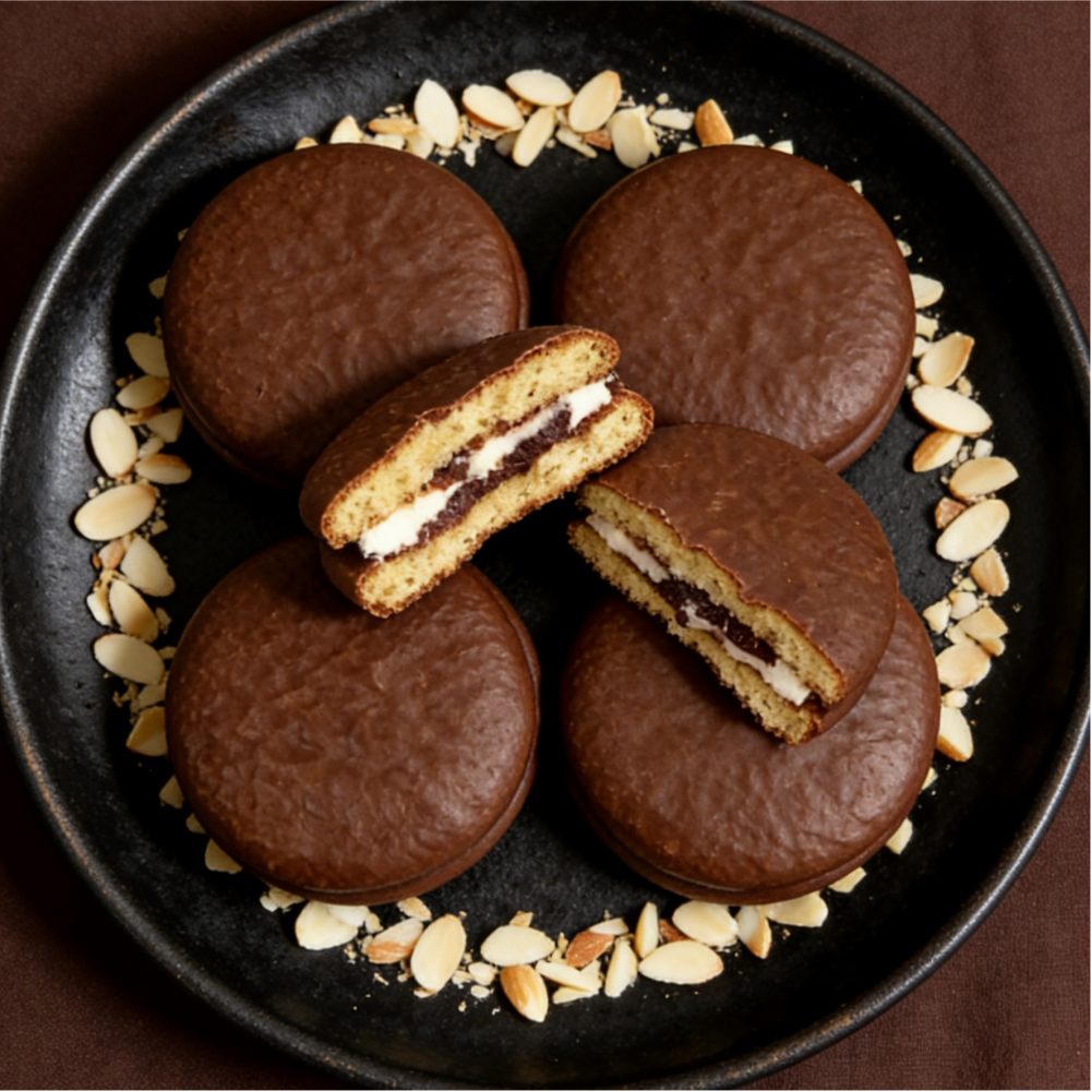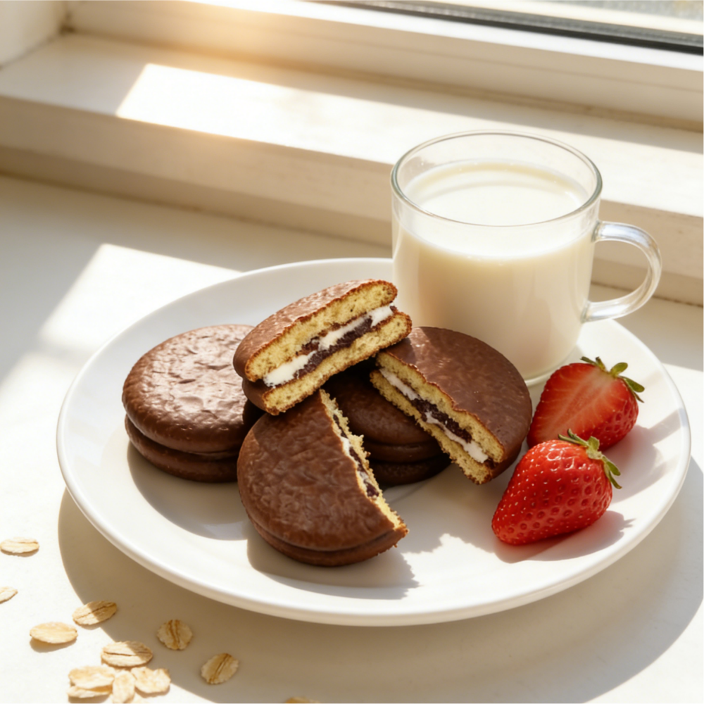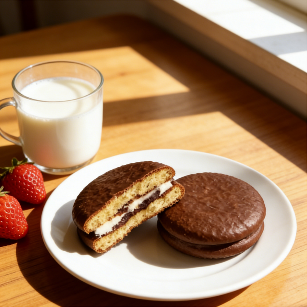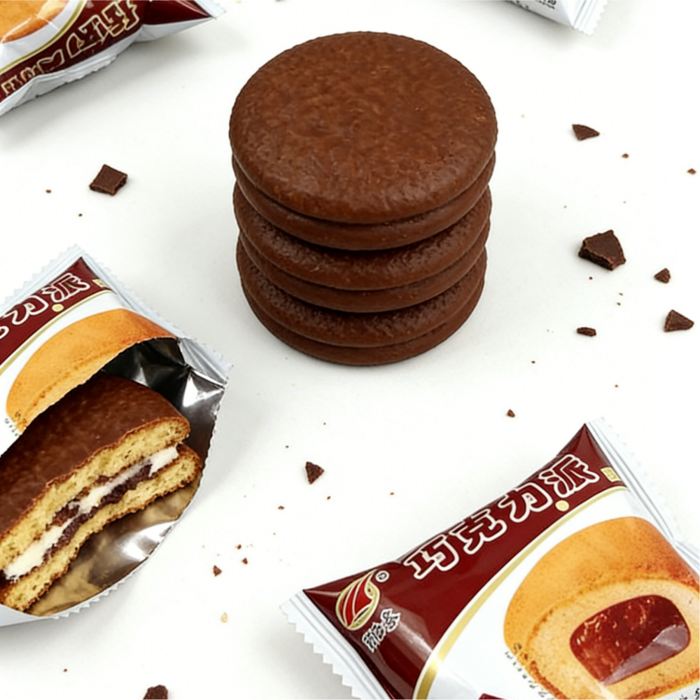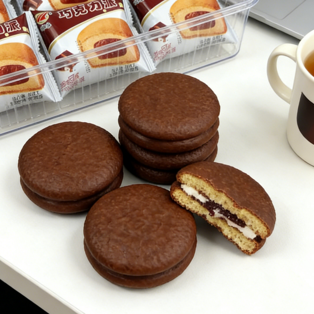 Classic sandwich dessert, with a soft chocolate flavored cake on the outer layer and a rich chocolate cream or marshmallow filling on the inner layer, with a dense and sweet taste that melts in the mouth. The surface is often coated with a thin layer of chocolate, and the overall sweetness is moderate. The independent packaging is convenient to carry and suitable for pairing with afternoon tea, children's snacks, or convenient breakfast, bringing a simple and satisfying chocolate healing moment.