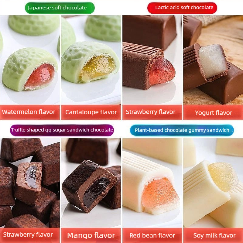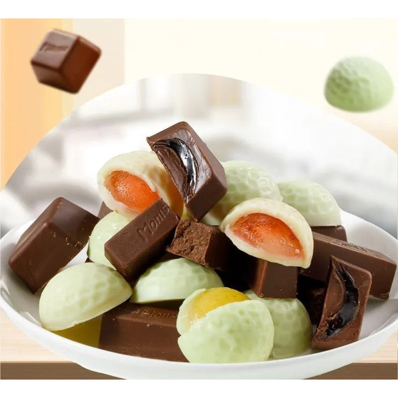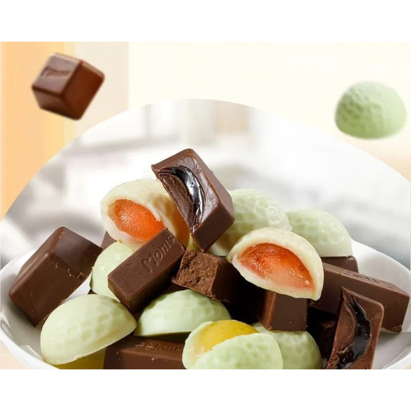 The outer layer is a silky chocolate shell, with a variety of flavor fillings hidden inside. The taste is rich in layers, crispy on the outside and soft on the inside, blending sweetness and smoothness. Compact and exquisite in design, commonly found in gift boxes or loose sharing. Suitable as a holiday gift, party dessert, office snack, or self reward, satisfy diverse taste buds with versatile fillings and classic chocolate flavors.