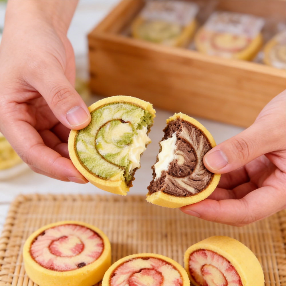 A roll shaped pastry made from a selection of classic and creative tea flavors, with a flexible tea scented outer layer and a delicate filling inside. It has a chewy and sweet taste with a distinct tea flavor. Mix and taste multiple tea fragrances in one go, individually packaged for easy sharing, suitable as a tea companion, office snack, or creative souvenir, bringing tea lovers a fresh and varied taste journey.