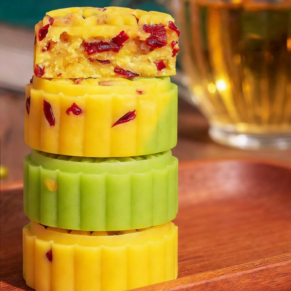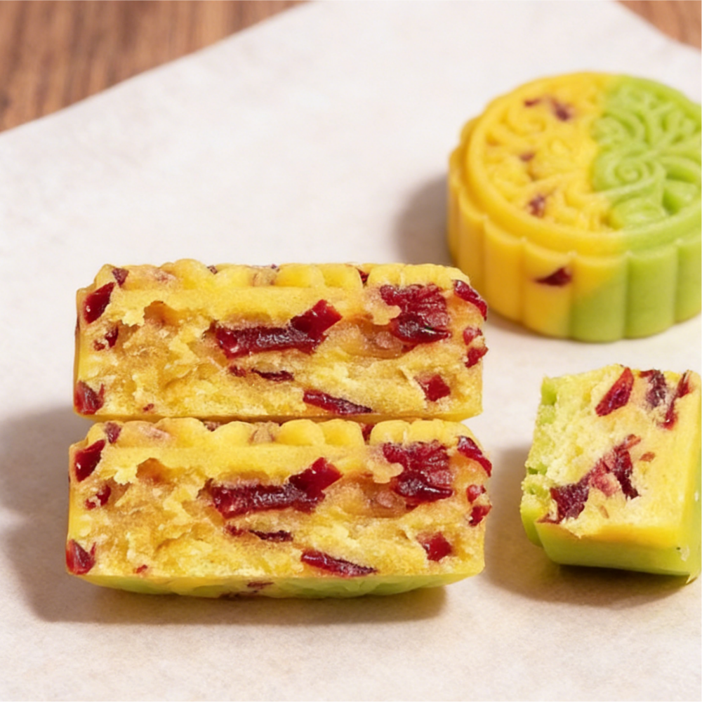 Based on the traditional Bean paste cake technology, it is blended with sweet and sour cranberry fruit grains and fruit flavor. The taste is delicate and cool, which melts like sand in the mouth. The aroma of mung bean is intertwined with the fruit acid of cranberry, which is sweet, refreshing and not greasy. Elegant and compact in design, it is suitable as a summer cooling tea, party dessert, or a souvenir. After refrigeration, the flavor is even better, bringing a refreshing taste and a long-lasting Chinese pastry innovation experience.