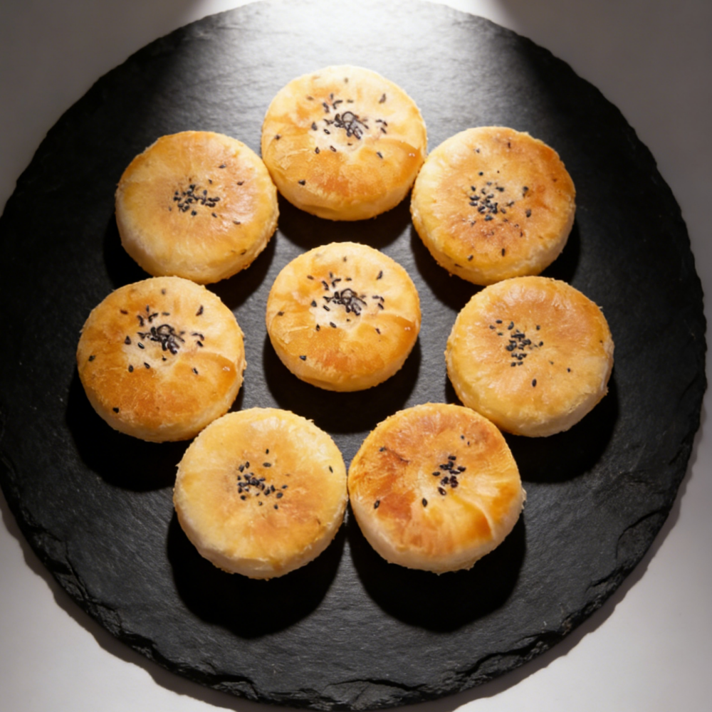 Traditional Chinese style pastry has a distinct outer layer and a crispy and fragile aroma. The filling is carefully stir fried with peeled mung beans, resulting in a dense and sweet taste with a pure bean aroma. After baking, the color is light yellow, the skin and filling blend together, and the aftertaste is sweet and smooth. It is suitable for refreshments, hand gifts or festival Dim sum, especially favored by diners who like classic mungbean flavor, and each mouthful is wrapped with simple and long southern charm.