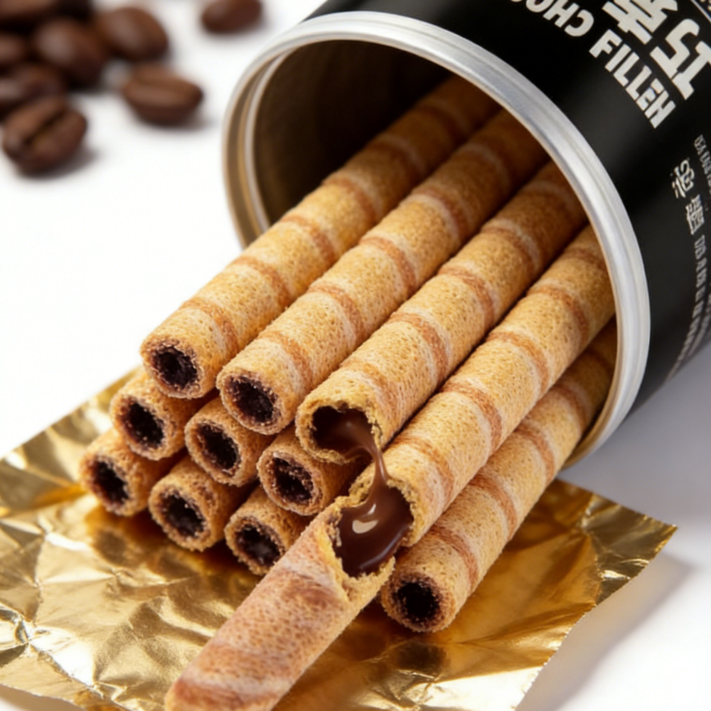 Contains two classic flavors: chocolate and hazelnut chocolate. The chocolate flavor is wrapped in crispy rolled skin and rich chocolate cream filling, with a smooth and mellow taste; The hazelnut chocolate flavor is infused with roasted hazelnut particles in the chocolate core, adding a nutty aroma and crispy texture. The roll shaped design is convenient for handheld consumption and is suitable as a casual snack, office tea break, or party snack. The dual flavor selection satisfies chocolate enthusiasts' pursuit of different tastes and flavors.