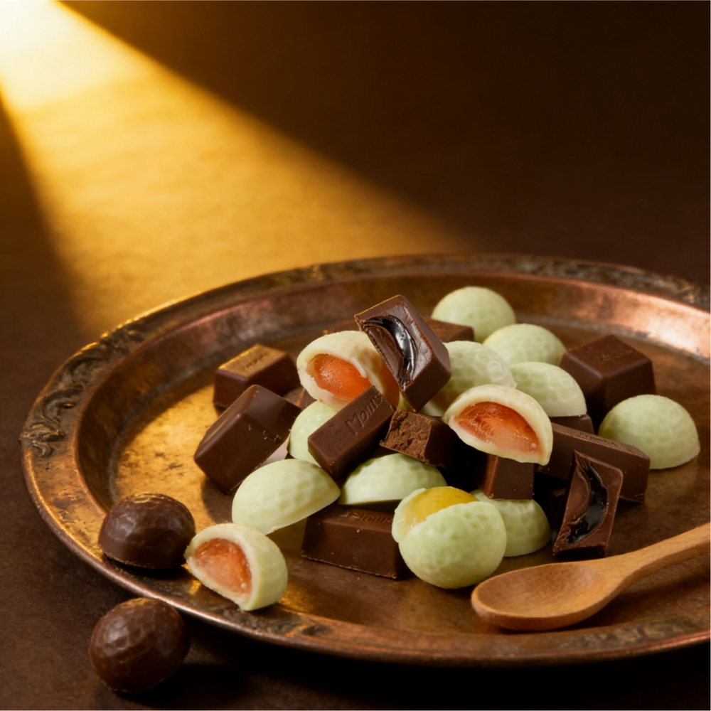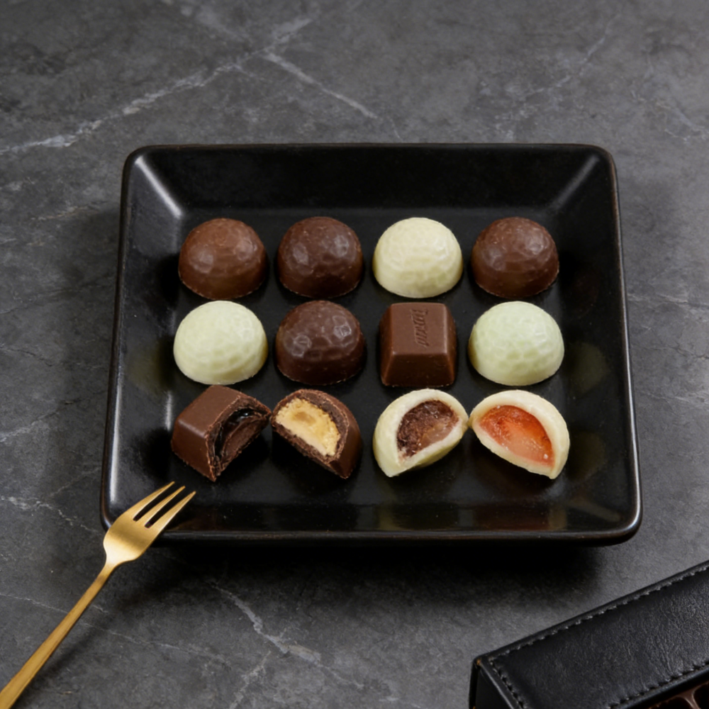 The outer layer is a silky chocolate shell, with a variety of flavor fillings hidden inside. The taste is rich in layers, crispy on the outside and soft on the inside, blending sweetness and smoothness. Compact and exquisite in design, commonly found in gift boxes or loose sharing. Suitable as a holiday gift, party dessert, office snack, or self reward, satisfy diverse taste buds with versatile fillings and classic chocolate flavors.