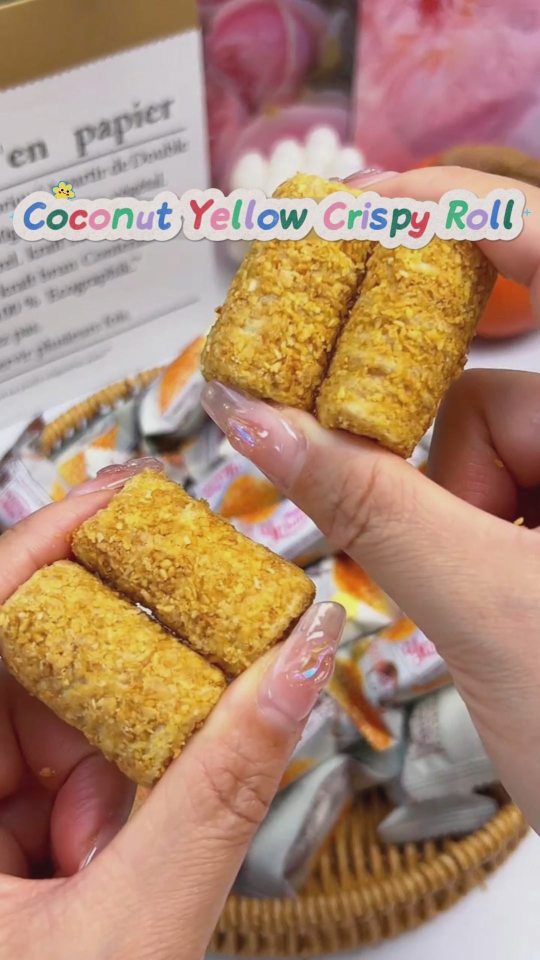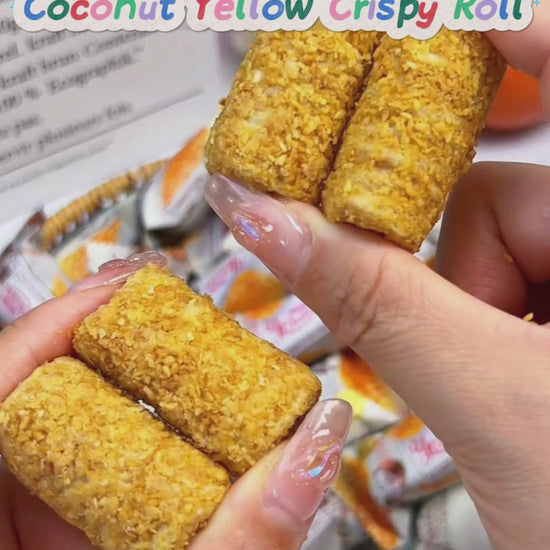 7.95oz/1bag Coconut Yellow Crispy Rolls,Light & Crispy Fried Roll Pastry Infused with Coconut Flavor, Sweet, Fragrant & Addictively Crunchy, Tropical Snack Perfect for Tea Time or a Sweet Craving