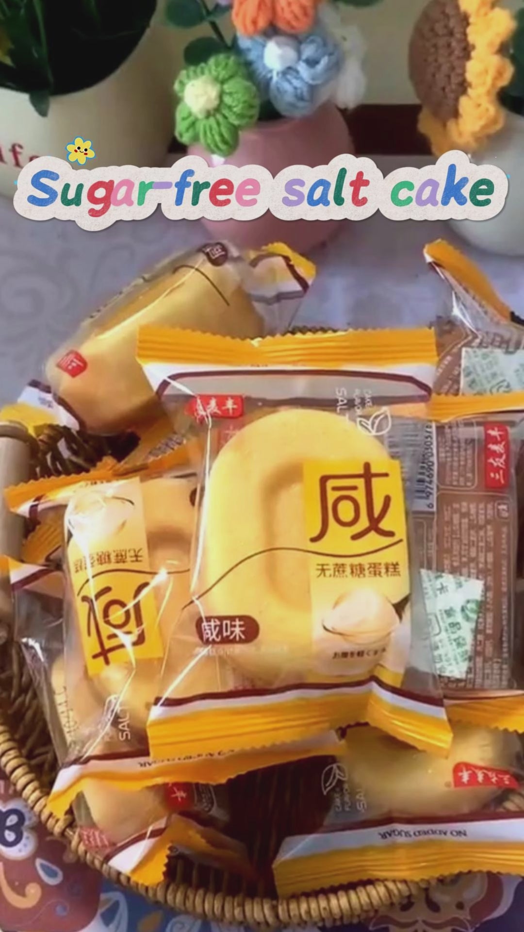 9.1oz/1boxed(Includes 4 packages) Sugar-free Salted Cake,Delicate Sponge Cake with a Subtle Savory Note, No Added Sugar, Light & Satisfying, Perfect for Health-Conscious Snackers, Diabetics, or Low-Carb Diets